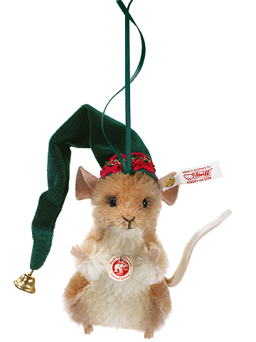 Since the publication of The Night Before Christmas in 1822, mice have been a part of holiday stories, decorating and celebrations. Steiff's charming 4 inch Stuart, The Little Mouse Ornament, is ready for a long winter's nap in his sleeping cap and warm coat of mohair fur. He'll make a very merry addition to your Christmas tree or a wonderful gift for a special friend.