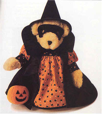 tied collar. Black velveteen witch's hat. Orange pumpkin, black felt