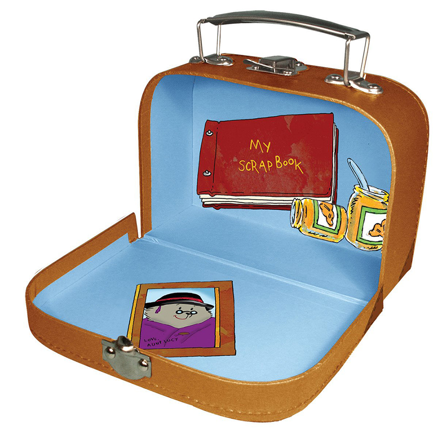 Printed on the inside is a photo of Aunt Lucy, PB's scrapbook and marmalade jars.