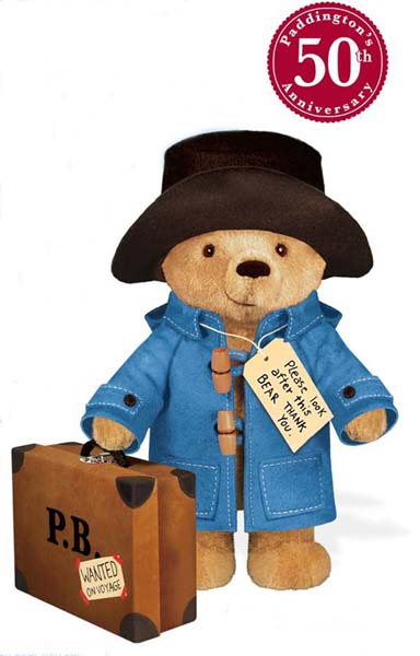 50th Anniversary Commemorative Paddington Bear wears a black felt