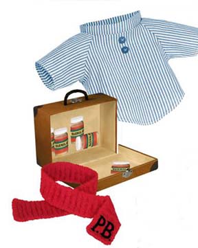 Paddington carries a sturdy paperboard suitcase which holds a woven
