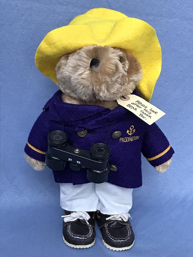 12" Paddington is ready to rule the seas in his smart naval jacket, white trousers and boat shoes. He carries his own binoculars so he can be the first to shout "Land ho!"