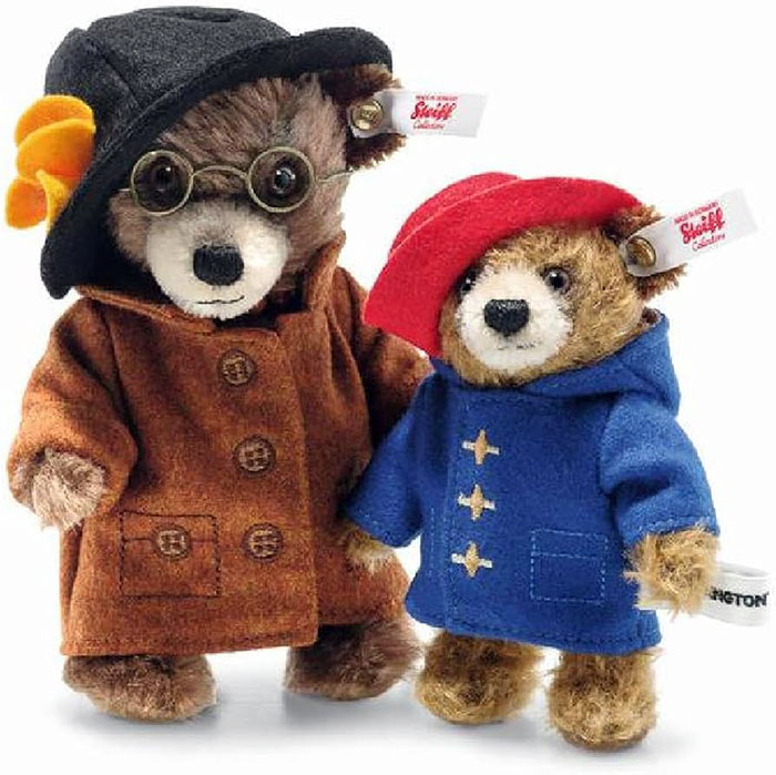 This exquisite set depicts Paddington and Aunt Lucy in miniature form. The pair are srafted from the finest chestnut brown mohair and are dressed as depicted in the popular Paddington movies. Aunt Lucy is 5.5 inches and Paddington is 4.25 inches. Both are jointed in their neck and arms. A beautiful keepsake set for fans of the books and films.